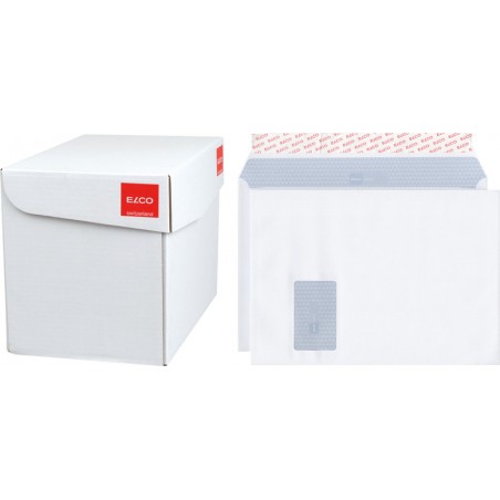 ELCO Briefumschläge Laser in Bürogrosspackung hochweisse Top-Qualität, Spezial-Laserpapier für optimale Druckresultate in Schwarz und farbig, chlorfrei, grau/weisser Innendruck aus 100% Wasserfarbe, Fenster aus hitzebeständiger Klarsichtfolie. Nachhaltigkeit eco:plus: recyclingfähig. Zertifikat: FSC. C4, mit Optifix® Haftklebeverschluss 324 x 229 mm, Façon DNG-HK. Schachtel zu 250 Stück.
