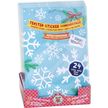 TRENDHAUS® Fenstersticker Magic Moments aus PE, 24 Sticker in Schneeflockenform, wiederverwendbar, weiss, Grössen und Formen sortiert.