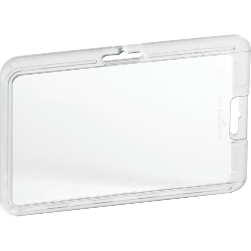 DURABLE Ausweishalter Permanent besonders handlich durch sein flaches Design, spezieller Mechanismus für dauerhaften Verbleib der Karte im Kartenhalter, für Bereiche mit besonders hohen Sicherheitsanforderungen geeignet, da Karte nicht entfernt werden kann, nicht für Kontaktchipkarten und Magnetstreifen geeignet, kombinierbar mit Kette, Clip, Textilband oder einem Jojo, einsetzbar im Hoch- oder Querformat. Innenmasse: B 87 x H 54 mm. Packung zu 10 Stück. Nachhaltigkeit eco:plus: recyclingfähig.