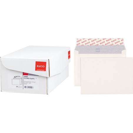 ELCO Briefumschläge Profutura in Bürogrosspackung naturweiss, 100% Recycling. Nachhaltigkeit eco:plus: recyclingfähig. C6, mit Optifix® Haftklebeverschluss 162 x 114 mm, Façon DNG-HK. Schachtel zu 500 Stück. Zertifikat: Der Blaue Engel.