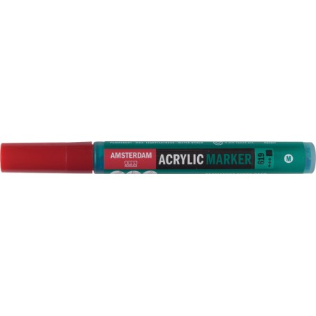 AMSTERDAM Acrylic Marker Rundspitze, brillante Farbe auf Wasserbasis, sehr hohe Lichtechtheit, besonders geeignet, um auf Acrylbildern Akzente zu setzen, malen oder schreiben auf vielen Materialien, z. B. Leinwand, Holz und Terrakotta, schnelltrocknend, nach Trocknung wasserfest, nicht nachfüllbar, Strichbreite ca. 4 mm.