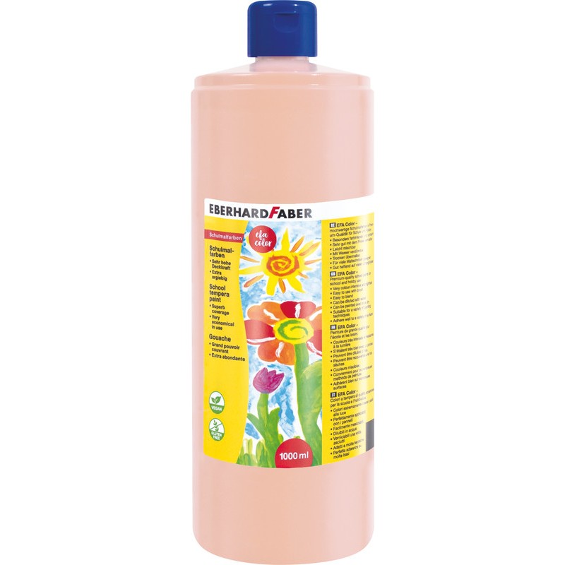 EBERHARD FABER Schulmalfarben EFA Color sehr hohe Deckkraft, trocknet schnell, ideal für Kindergarten und Schule, besonders geeignet für Papier, auch für alle saugenden und leichtsaugenden Materialien wie Karton und Holz, abwaschbar aus den meisten Textilien. Flasche zu 1000 ml.