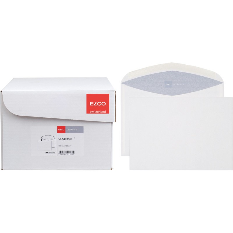 ELCO Briefumschläge Profutura in Bürogrosspackung naturweiss, 100% Recycling. Nachhaltigkeit eco:plus: recyclingfähig. C5, mit Optimail® Nassklebeverschluss 229 x 162 mm, Façon DNR. Schachtel zu 500 Stück. Nachhaltigkeit eco:plus: Zertifikat: FSC.
