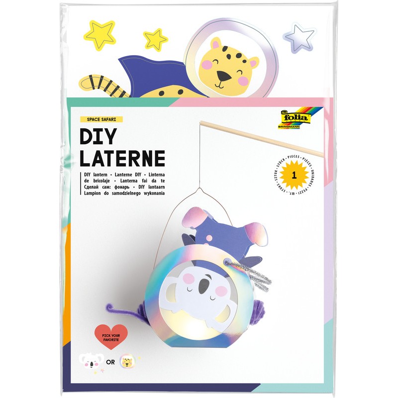 FOLIA® Bastelset Laterne Friends Set zu Stanzbögen 230 x 330 mm, Laternen-Rohling, 2 Bogen Transparentpapier, Laternendrahtbügel und Laternenholzstab und ergänzenden Materialien, inkl. Anleitung, unterschiedliche Motive möglich. Zertifikat: FSC.