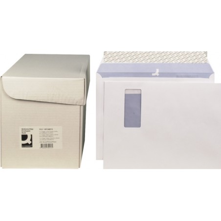 Q-CONNECT® Briefumschläge in Bürogrosspackung weiss, elementarchlorfrei, grauer Innendruck aus 100% Wasserfarbe. C4, mit Haftklebeverschluss 324 x 229 mm, Façon DNG-HK. Schachtel zu 250 Stück.