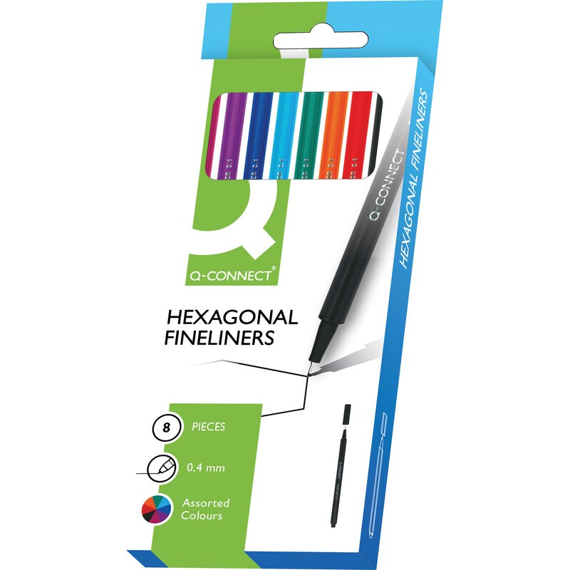 Q-CONNECT® Fineliner Triangular metallgefasste, feine Kunststoffspitze, 6eckiger Schaft, Kappe in der Schreibfarbe, nicht nachfüllbar, Strichbreite ca. 0,4 mm.
