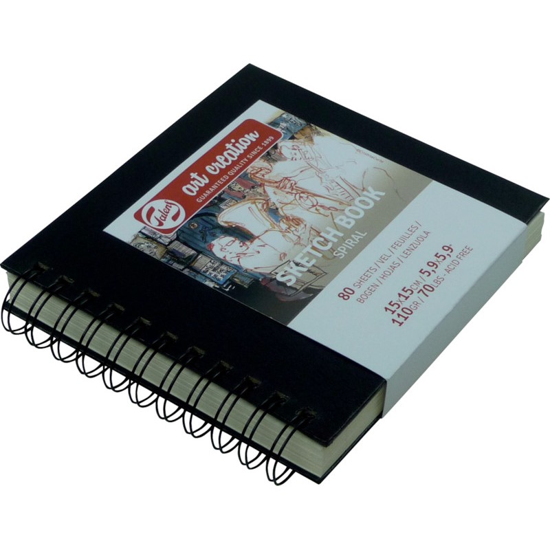 TALENS ART CREATION Skizzenbuch Sketch Book Spiral Zeichenpapier weiss, 110 g/m2, verstärktes schwarzes Deckblatt, geeignet für Skizzieren, Bleistift, Holzkohle, Kreide, Graphit, Farbstifte, Tinte und Aquarell, Spiralbindung, 160 Seiten, perforiert.
