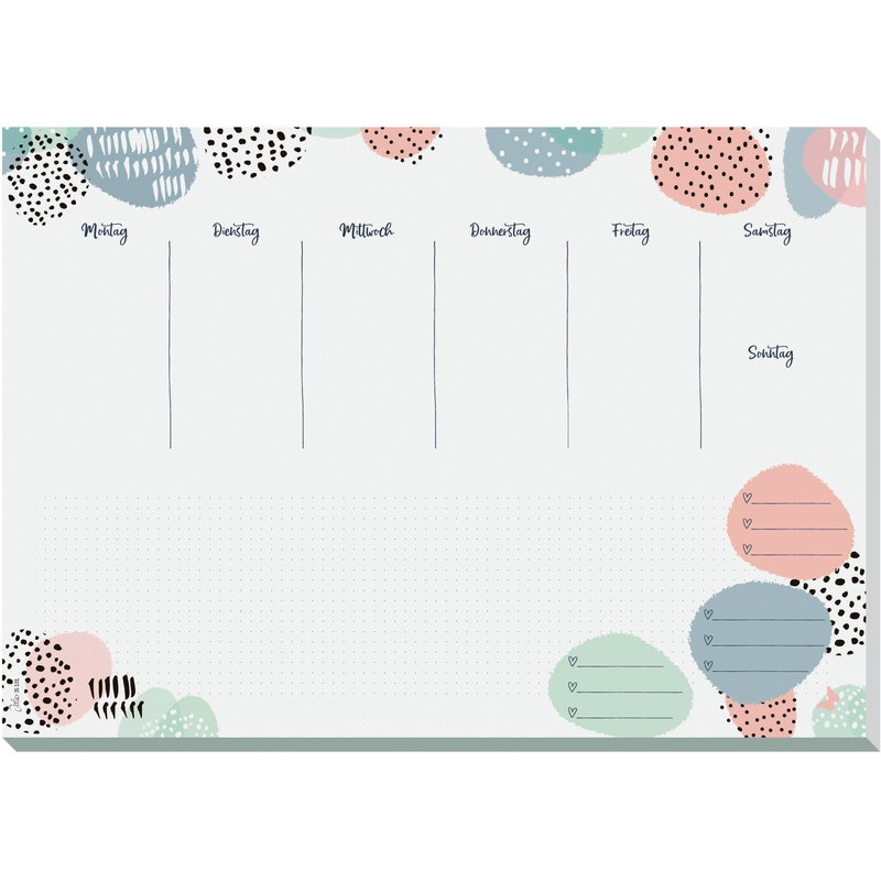 SIGEL Schreibunterlage JOLIE® Wochenplaner aus Papier, 80 g/m2, undatiert, deutsch, 1 Woche pro Blatt, hat Platz für Notizen auf Punktraster-Lineatur, stabile Verleimung an der Unterkante und an den Ecken verhindert Eselsohren, vollgeschriebene Blätter können abgetrennt werden. Masse: B 420 x H 297 mm.