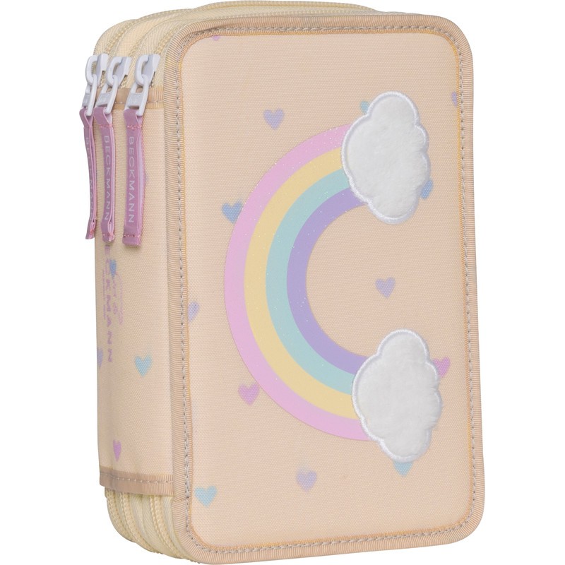 BECKMANN Schüleretui Classic Triple aus recycelten PET-Flaschen (rPET), 3 Klappen, mit Rundbogenreissverschluss, 27-teilig gefüllt mit Marco by BECKMANN Produkten, 7 Farbstifte Jumbo, 13 Farbstifte, 2 Bleistifte Jumbo HB, Massstab 17 cm, Radierer, Doppelspitzer, Stundenplan und kleiner Notizblock. Masse: B 130 x H 205 x T 70 mm. Gewicht: 435 g. Nachhaltigkeit eco:plus: Zertifikat: OEKO TEX®.