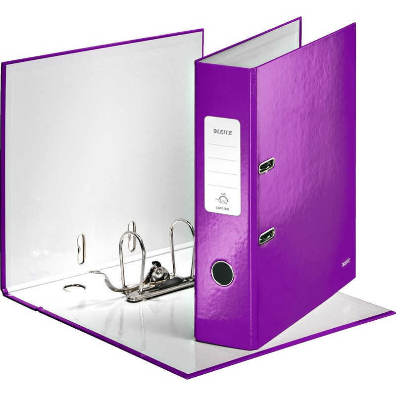 LEITZ® Ordner 180° WOW mit patentierter 180°-Präzisionsmechanik, 50% weiter offen, Einlegen auch auf der linken Seite möglich, stabiler und robuster Graukarton, aussen und innen mit laminiertem Papier bezogen, mit selbstklebendem Rückenschild, mit Raumsparösen und Griffloch, starke Hebelmechanik mit Tippklemmer, für 8 cm Lochabstand, für Format A4. Garantie: 5 Jahre auf die Mechanik. Nachhaltigkeit eco:plus: Zertifikat: FSC. Rückenbreite 8 cm