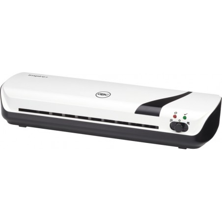 GBC® Laminiersystem Inspire+ A4 laminiert bis zu einer Arbeitsbreite von 241 mm (A4), Aufheizzeit 4 Min., mit Einstellung für Kaltlaminiertaschen, fixe Temperatureinstellung, Geschwindigkeit bis 250 mm/Min., Entriegelungshebel zur Entnahme fehleingezogener Laminate, laminieren ohne Carrier möglich, Folienstärken 75 - 125 Micron, inkl. Starter Pack für 5 Dokumente (A4). Masse: B 350 x H 60 x T 130 mm. Gewicht: 1,24 kg. Preis inkl. VRG.