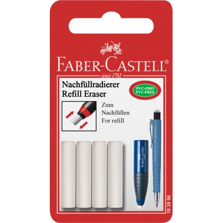 FABER-CASTELL Nachfüllradierer zu Radierer-Spitzer-Kombination 184400 und Radierstift 183997, PVC-frei. Blister zu 4 Stück. Nachhaltigkeit eco:plus: umweltfreundliche Verpackung.