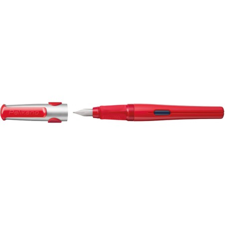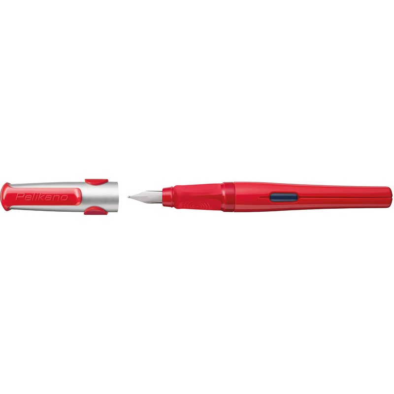 PELIKAN Füllfederhalter Pelikano® Soft-Griffzone passend zu Schaftfarbe, transparentes Sichtfenster für gute Sicht auf den Tintenstand, Edelstahlfeder mit Iridiumkorn für kratzfreies Schreiben, Metallkappe. Nachhaltigkeit eco:plus: verlängertes Produktleben, recyclingfähig, Abfallminderung. für Rechtshänder