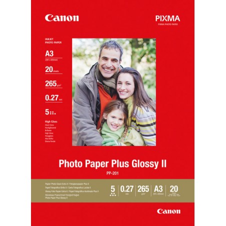 CANON Inkjet Fotopapier Plus PP-201, glossy hochwertiges, schweres Papier für exzellente Qualität, einseitig bedruckbar, Oberseite glänzend, 25 Jahre Lichtbeständigkeit. Geeignet für Inkjetdrucker. Packung zu 20 Blatt