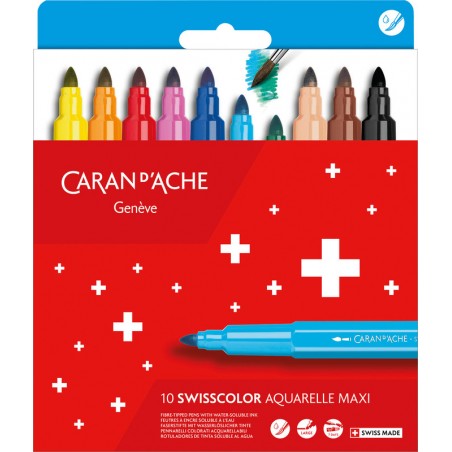 CARAN D'ACHE Fasermaler Swisscolor(TM) wasservermalbare Fasermaler aus Lebensmittelfarbe, leuchtende Farben, sehr hohe, nicht zerfasernde Druckfestigkeit/Geschmeidigkeit, auswaschbar, können ohne auszutrocknen bis zu einer Woche geöffnet bleiben. Maxi, in Kartonetui