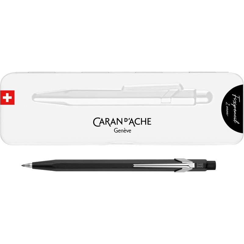 CARAN D'ACHE Druckbleistift FIXPENCIL(TM) Slimpack kantig, Länge 135 mm, Metallclip, mit Minenspitzer, Knopf schwarz. Nachhaltigkeit eco:plus: zerlegbar konstruiert, verlängertes Produktleben, umweltfreundliche Verpackung.