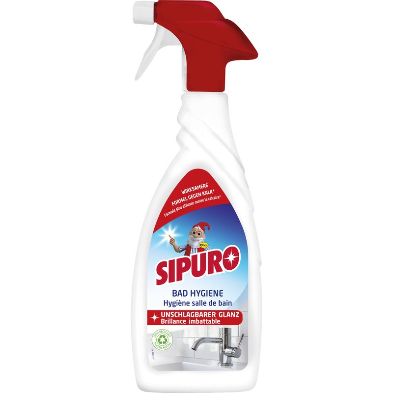 SIPURO Badreiniger streifenfrei, reinigt Schmutz, Ablagerungen und Seifenrückstände, für Armaturen, Fliesen, Badewannen, Duschen und Waschbecken, schützt vor Wiederverschmutzung, direkt auf die verschmutzte Oberfläche sprühen, mit einem Tuch oder Schwamm nachwischen, mit Wasser abspülen. Flasche zu 650 ml. Nachhaltigkeit eco:plus: recyclingfähig, recycelter Bestandteil, Recycelgehalt Abfall vor Gebrauch max. 60%.