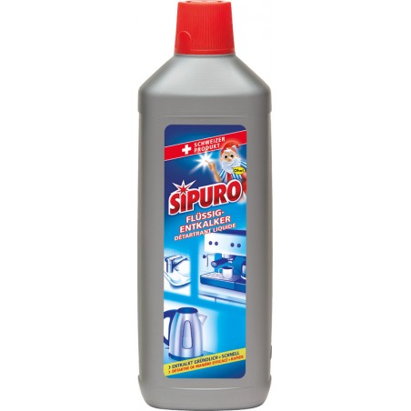 SIPURO Flüssig-Entkalker keine Dampfentwicklung, hinterlässt keine chemischen Rückstände nach dem Entkalken und Spülen, befreit Gegenstände von Kalk, geeignet für Wasserkocher, Töpfe, Vasen, Wasserhahnsiebe, Duschbrausen, Kaffeemaschinen usw. Flasche zu 1 l. Nachhaltigkeit eco:plus: recyclingfähig.