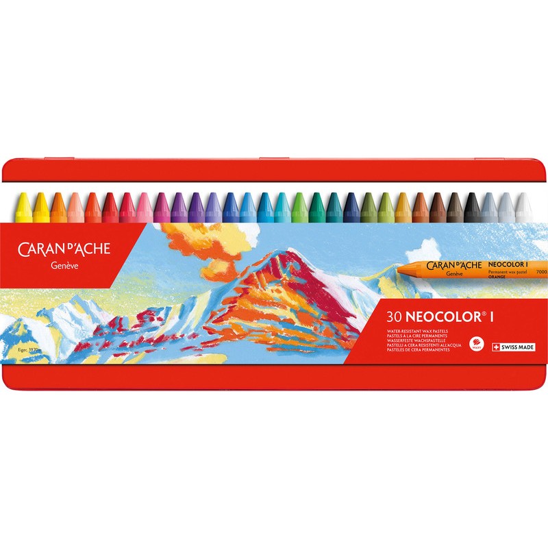 CARAN D'ACHE Neocolor(TM) I permanent Wax Classic in Metallschachtel wasserfeste Malpastelle, leuchtende und lichtechte Farben, äusserst farbintensiv, unbeschränkte Mischmöglichkeiten, anwendbar auf Papier, Leder, Glas, Plastik, Stoff usw., Länge 10 cm, Ø 8,6 mm.