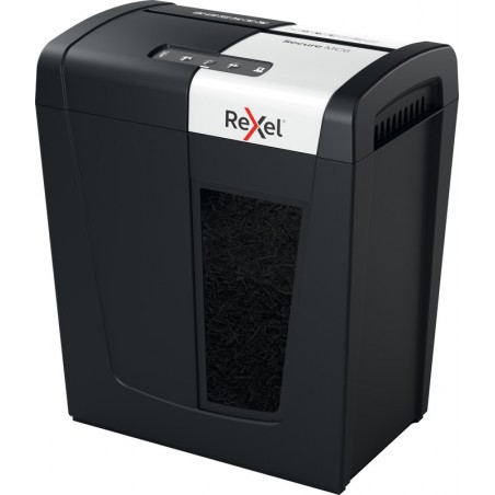 REXEL® Aktenvernichter Secure MC6 18 l Auffangbehälter mit Sichtfenster, volle DIN A4-Arbeitsbreite von 220 mm, Sicherheitsstufe P-5, schneidet bis zu 6 Blatt pro Vorgang, vernichtet Heft- und Büroklammern, Motorleistung: 160 W, geräuscharmer Betrieb, unter 60 dBA, LED-Leuchtanzeigen für Papierstau und Überhitzung, einfache, intuitive Bedienung durch Touch-Control-Tasten, Anti-Papierstau-Technologie, Rücklaufmodus. Masse: B 351 x H 355 x T 204 mm. Gewicht: 4,8 kg. Preis inkl. VRG. Zertifikat: CE, TÜV/GS.