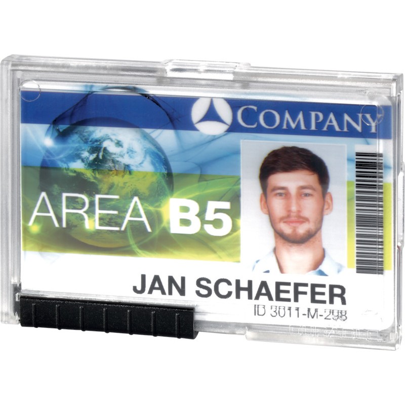 DURABLE Ausweishalter Pushbox mit Schieberfunktion kann jede Karte einzeln nach vorne geschoben werden, separate Kammern schützen z. B. Karten mit Magnetstreifen vor Beschädigung, einsetzbar im Hoch- oder Querformat, kombinierbar mit Kette, Clip, Textilband oder einem Jojo. Masse: B 87 x H 54 mm. Packung zu 10 Stück. Nachhaltigkeit eco:plus: recyclingfähig.
