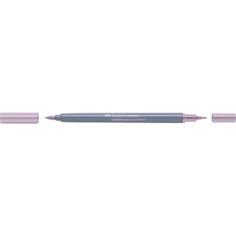 FABER-CASTELL Dual Marker Goldfaber Aqua Zweifunktionsmaler, Finelinerspitze 0,6 mm für Konturen und Details, Pinselspitze für feines, breites und flächiges Arbeiten, Tinte auf Wasserbasis, Verschlusskappe in der Schreibfarbe, wasservermalbar, geruchsneutral, säurefrei, pH-neutral, nicht nachfüllbar. Nachhaltigkeit eco:plus: verlängertes Produktleben, zurückgewonnene Energie, recycelter Bestandteil, Recycelgehalt Abfall vor Gebrauch max. 51%, Abfallminderung.