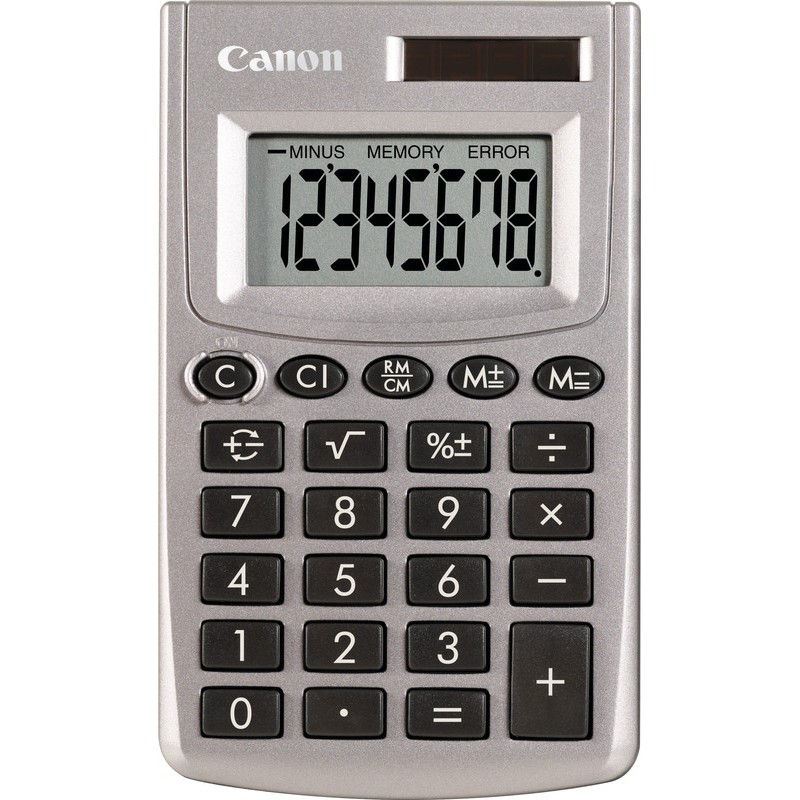 CANON Taschenrechner LS-270L mit 8-stelliger LCD-Anzeige, 1 Speicher, +/- Taste und Prozenttaste. Stromversorgung: Solar- und Batteriebetrieb (LR54). Masse: B 61 x H 10 x T 102 mm. Gewicht: 37 g. Preis inkl. VRG.