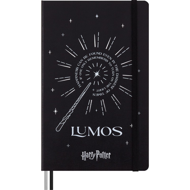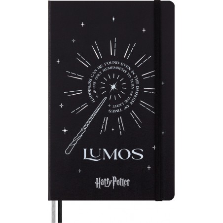 MOLESKINE® Notizbuch Limited Edition Harry Potter fester Textileinband, mit Glow in the Dark-Effekt, Gummibandverschluss, abgerundete Ecken, säurefreies, elfenbeinweisses Papier, 100 g/m2, liniert, 176 Seiten, 2 Lesezeichen, interne Falttasche aus Karton und Textil, inkl. Stickerbogen, Format Large 130 x 210 mm. Nachhaltigkeit eco:plus: Abfallminderung. Zertifikat: FSC.