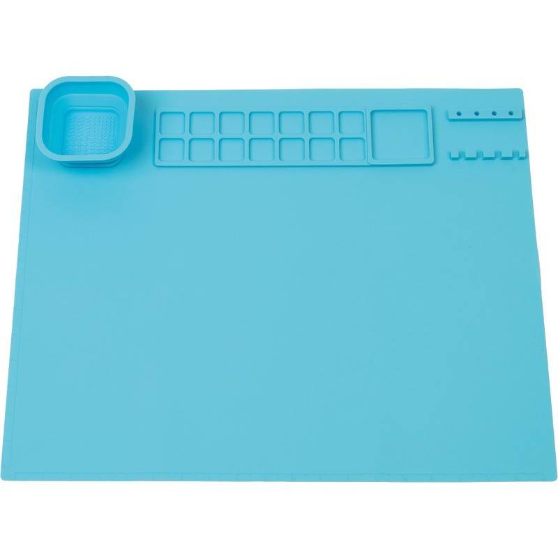 WEDO® Malmatte aus pflegeleichtem Silikon, abwaschbar, mit Vertiefungen für Farben, mit Malbecher, beides durch Faltmechanismus handlich klein zu verstauen. Masse: B 500 x H 400 mm.