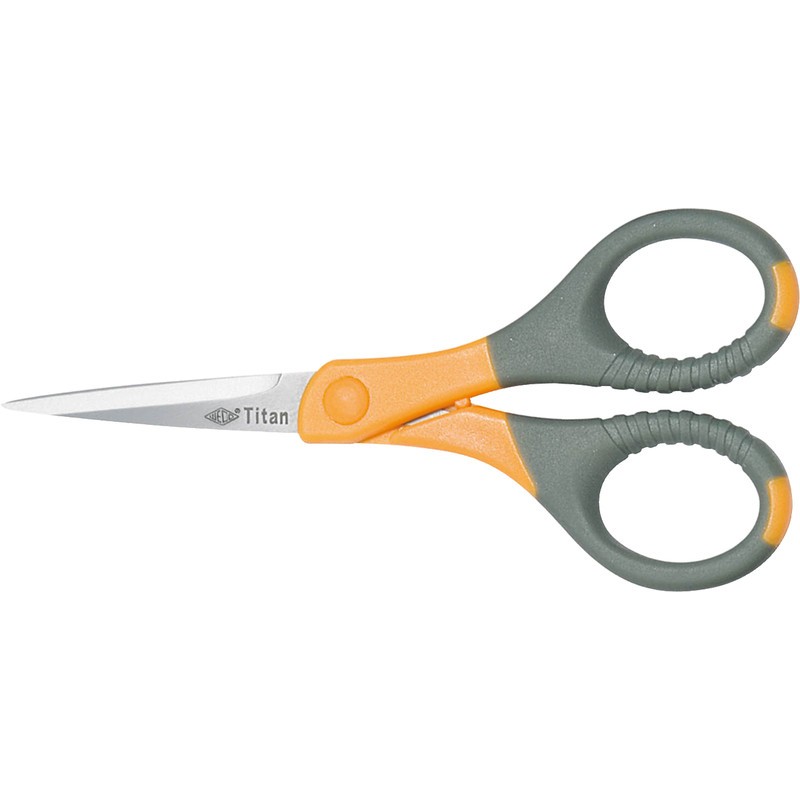 WEDO® Schere Titan Plus für Rechts- und Linkshänder, aus Edelstahl mit Titanbeschichtung, ergonomische Kunststoffgriffe gelb mit grauem Gummi-Profil.