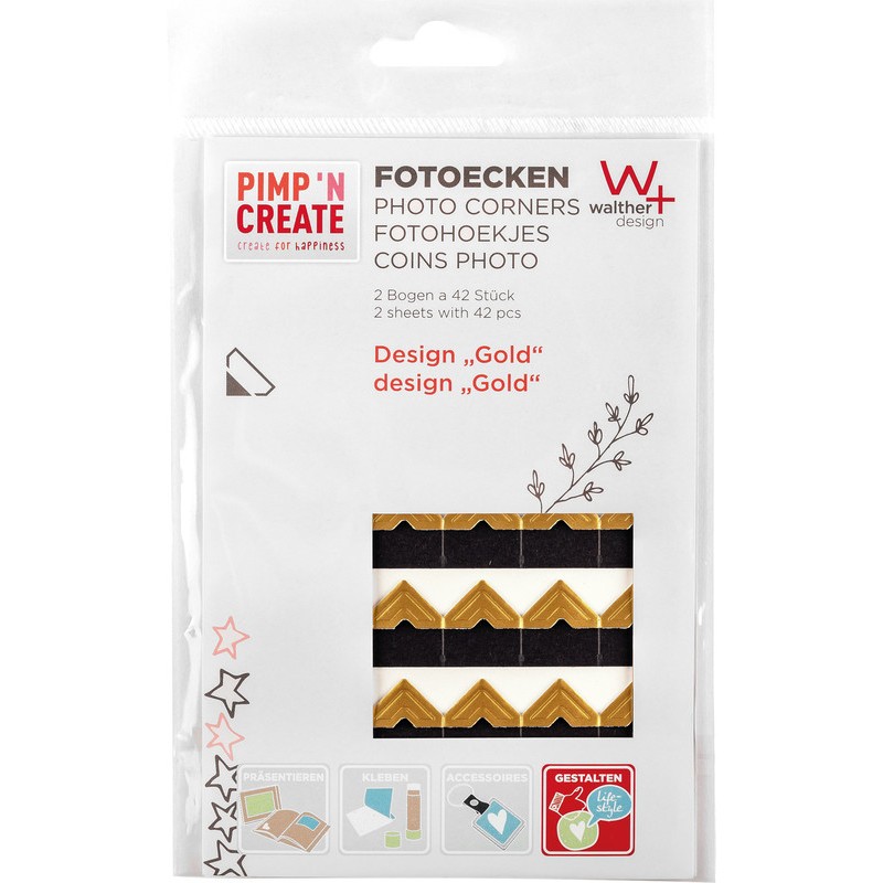 WALTHER Fotoecken Pimp 'N Create selbstklebend, lösungsmittelfrei, alterungsbeständig, Format 18 x 20 mm. Blister zu 2 Blatt mit je 42 Fotoecken. Nachhaltigkeit eco:plus: recyclingfähig, umweltfreundliche Verpackung.