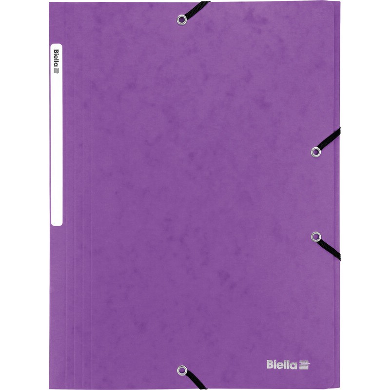 BIELLA Gummibandmappe mit 3 Einschlagklappen, mit Beschriftungsstreifen und Gummibandverschluss (im Vorderdeckel eingenietet), Fassungsvermögen bis 20 mm, für Format A4. Nachhaltigkeit eco:plus: Zertifikat: FSC. aus Pressspan, 365 g/m2 Format 242 x 318 mm.