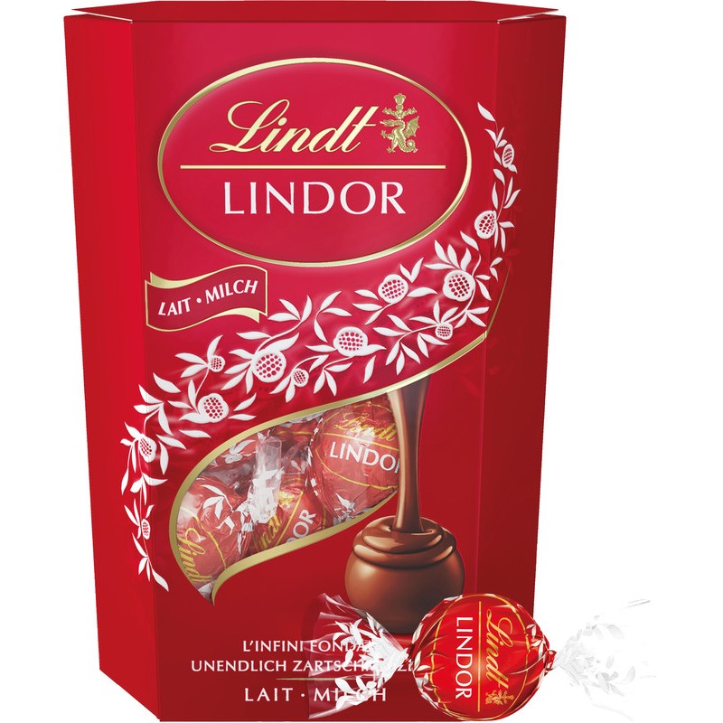 LINDT Lindor-Kugeln Cornet aus Milchschokolade, mit zartschmelzender Füllung (44%), einzeln verpackt.