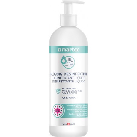 MARTEC Händedesinfektionsmittel zur hygienischen Händedesinfektion im professionellen und privaten Bereich, sehr gut hautverträglich, dermatologisch getestet, breites Wirkungsspektrum. mit Aloe vera pflegend und gut duftend durch Aloe vera.