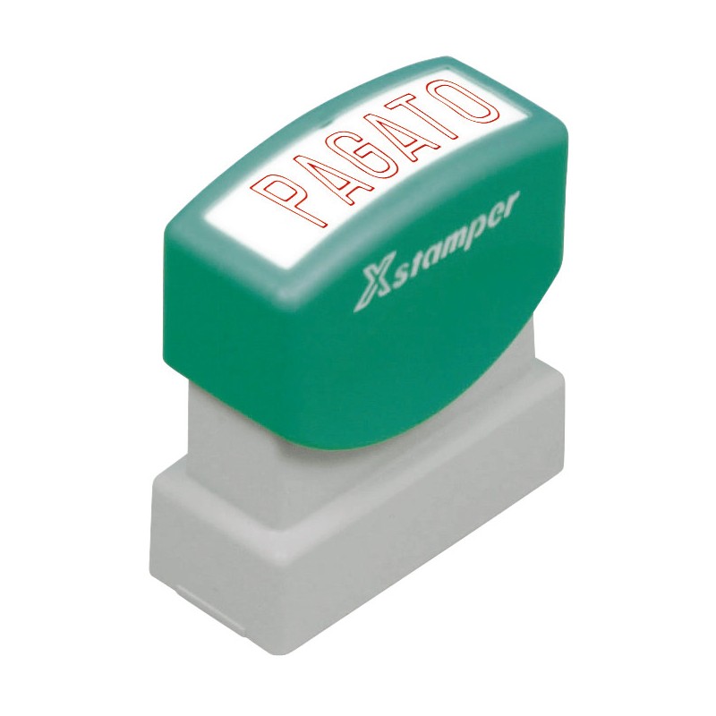 X-STAMPER® Wortstempel selbstfärbend stempelt bis 100000-mal mal, bevor Nachfüllen erforderlich, Stempeltext im Fenster ersichtlich. Text italienisch
