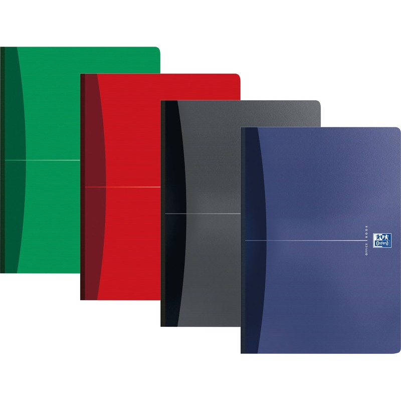 OXFORD Notizheft Essentials flexibler Kartoneinband laminiert, seidenglattes, hochweisses OPTIK PAPER®, 90 g/m2, 192 Seiten, abgerundete Ecken, farbig sortiert, lavendelblau, grün, rot und silber. A4 abtrennbare Ecken.