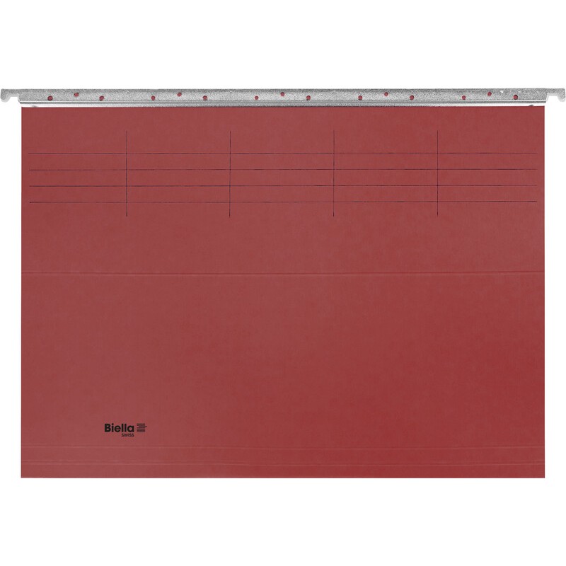 BIELLA ORIGINAL Hängemappe farbig ohne Zubehör aus starkem, strapazierfähigem Karton, Tragstangen aus Metall mit Nylon-Gleitern, Format 32 x 25 cm.