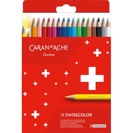 CARAN D'ACHE Farbstifte Swisscolor(TM) nicht wasserlöslich, lichtechte Farben, hohe Deckkraft, feine Mine Ø 2,8 mm, geeignet für Trocken- und Feinzeichnen sowie Malen, für Nachwuchskünstler und Familien. Nachhaltigkeit eco:plus: Zertifikat: FSC. in Kartonetui