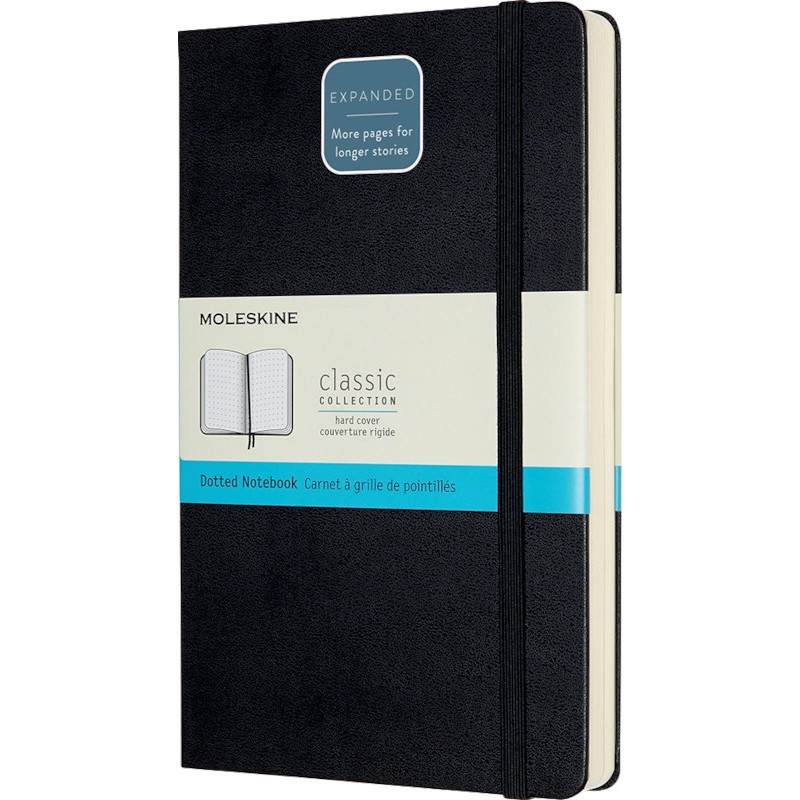 MOLESKINE® Notizbuch Classic Collection aus PU, säurefreies Papier, 70 g/m2, abgerundete Ecken, Lesezeichen, interne Falttasche aus Karton und Textil, Gummibandverschluss. Nachhaltigkeit eco:plus: recyclingfähig, recycelter Bestandteil. Zertifikat: FSC. Large 130 x 210 mm, fester Einband, 400 Seiten