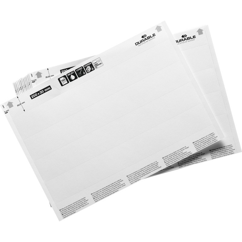 DURABLE Einsteckschilder Label Refill weiss, Etiketten-Bogen mikroperforiert, Format A5, zur professionellen Beschriftung im Lager und der Produktion, geeignet für DURABLE Scannerschienen Scanfix® und DURABLE Magnetband C-Profil, einfache Beschriftung mit kostenloser Beschriftungssoftware Duraprint® unter www.duraprint.de. Geeignet für Kopierer, Laser-/Inkjetdrucker und Farblaserdrucker/-kopierer. Beutel zu 20 Blatt. Nachhaltigkeit eco:plus: recyclingfähig.