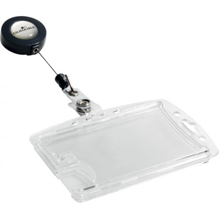 DURABLE Hartboxen für Betriebsausweise kristallklar, schützt und schafft durch die Daumenstanzung einen schnellen Zugriff, einsetzbar im Hoch- oder Querformat. Innenmasse: B 87 x H 54 mm. Nachhaltigkeit eco:plus: recyclingfähig, recycelter Bestandteil, Recycelgehalt Abfall nach Gebrauch max. 8%. mit Aufrollmechanismus Band bis zu 800 mm ausrollbar. Packung zu 10 Stück.