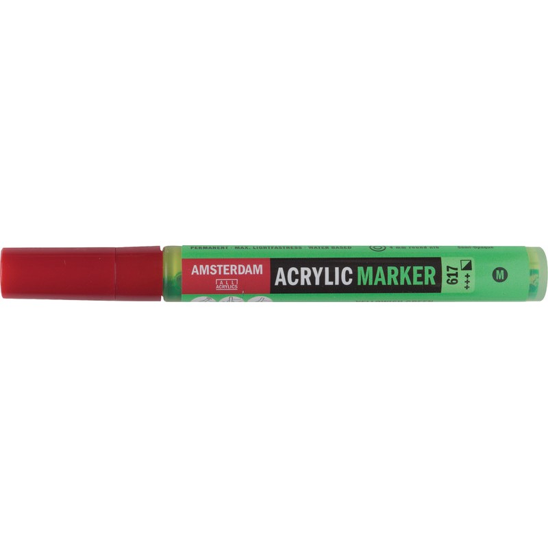 AMSTERDAM Acrylic Marker Rundspitze, brillante Farbe auf Wasserbasis, sehr hohe Lichtechtheit, besonders geeignet, um auf Acrylbildern Akzente zu setzen, malen oder schreiben auf vielen Materialien, z. B. Leinwand, Holz und Terrakotta, schnelltrocknend, nach Trocknung wasserfest, nicht nachfüllbar, Strichbreite ca. 4 mm.