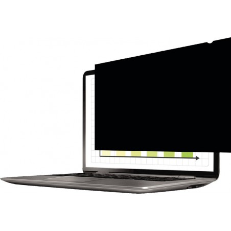 FELLOWES® Blickschutzfilter für Notebooks PrivaScreen schwarz, verhindert seitliche Einblicke auf den Bildschirm, wirksame Verdunkelung bei einem Blickwinkel von 30°, schützt optimal vor Kratzern, Schmutz und Fingerabdrücken, leichtes Anbringen und Entfernen, reduziert die Blendung, mit Quick Reveal Tabs(TM) Klappbefestigung.