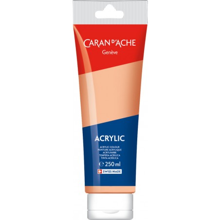 CARAN D'ACHE Acrylic leuchtende Acrylfarben, bilden keine Risse, werden nicht matt, lichtecht, mit Wasser verdünnbar, hohe Pigmentkonzentration, geeignet für glatte und strukturierte Oberflächen wie Leinwand, Gewebe, Stoff, Papier, Karton, Glas, Kunststoff, Metall, Holz etc., kann mit Pinsel oder Spachtel aufgetragen werden. Tube zu 250 ml.
