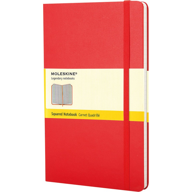 MOLESKINE® Notizbuch Classic Collection farbig aus PP, Gummibandverschluss, abgerundete Ecken, säurefreies Papier, 70 g/m2, Lesezeichen, interne Falttasche aus Karton und Textil. Nachhaltigkeit eco:plus: Recycelgehalt Abfall nach Gebrauch max. 50%. Zertifikat: FSC. Large 130 x 210 mm, fester Einband, 240 Seiten