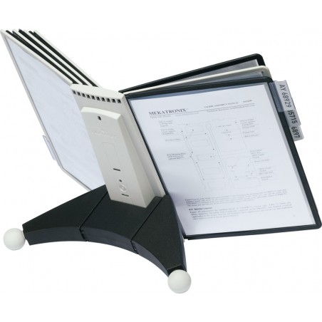 DURABLE Sichttafelsystem Sherpa® Table 10 extrem stabil, rutschfest, erweiterbar mit Erweiterungsmodul 5624. Set zu Modultischständer, 10 reflexionsarme, scannertaugliche Sichttafeln für Format A4, farbig sortiert, und 10 Reiter 58 mm mit blanko Einsteckschildern. Garantie: 5 Jahre. Nachhaltigkeit eco:plus: recyclingfähig, recycelter Bestandteil, Recycelgehalt Abfall vor Gebrauch max. 5%.