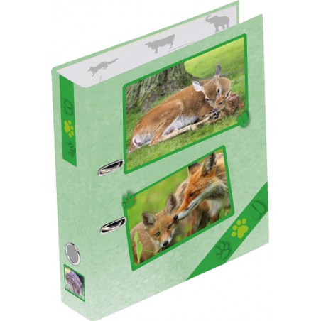 PAGNA® Ordner Tierspuren aus Karton, mit schmutzabweisender Laminierung, mit Raumsparösen und Griffloch, Hebelmechanik, Rückenbreite 7,5 cm, 2-Ring-Mechanik, Ø 60 mm, für Format A4.