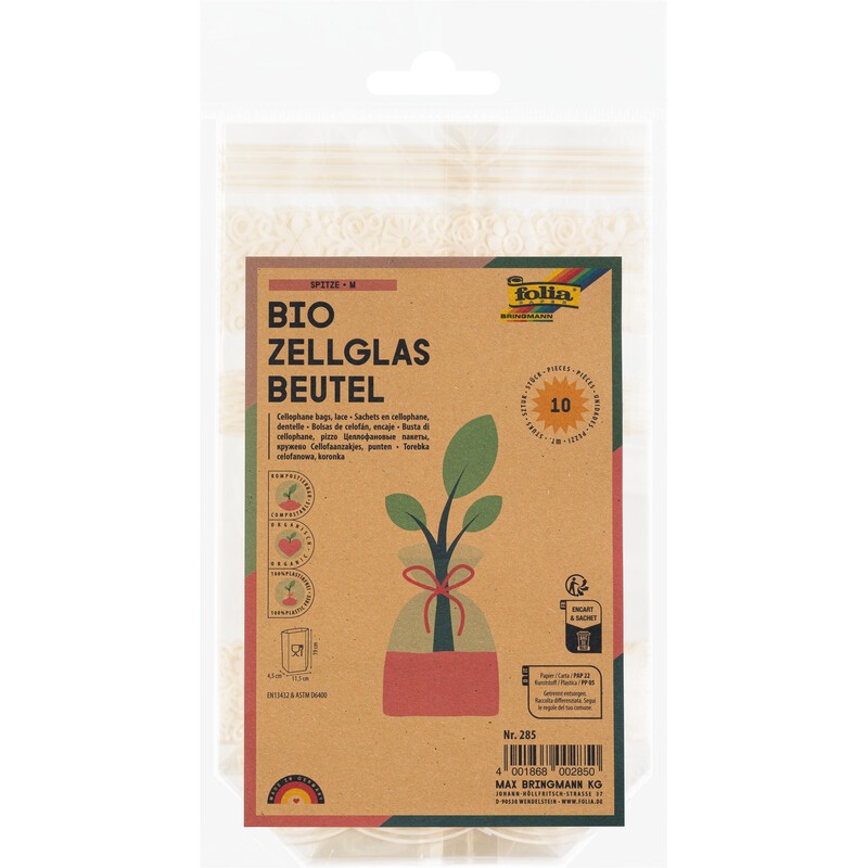 FOLIA® Cellophantüten mit Spitzen mit Kreuzboden. Packung zu 10 Stück. Nachhaltigkeit eco:plus: kompostierbar, abbaubar.