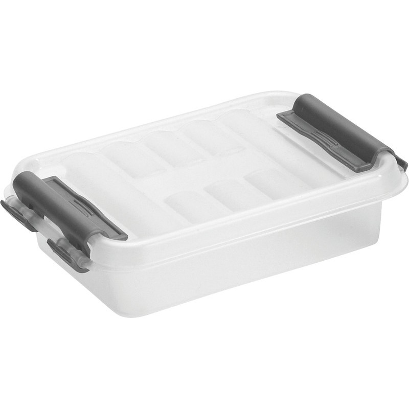 HELIT Aufbewahrungsbox the q-line aus transparentem PP, Deckel mit Clip verschliessbar, stapelbar. Nachhaltigkeit eco:plus: verlängertes Produktleben, recyclingfähig, Recycelgehalt Abfall nach Gebrauch max. 100%, Abfallminderung. ohne Tragegriff