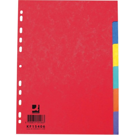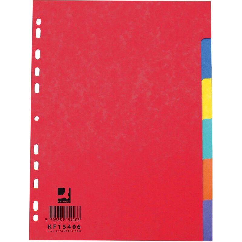 Q-CONNECT® Register Vollformat aus Glanzkarton 225 g/m2, farbig. Nachhaltigkeit eco:plus: recyclingfähig, recycelter Bestandteil, Recycelgehalt Abfall vor Gebrauch max. 50%, Recycelgehalt Abfall nach Gebrauch max. 50%, Abfallminderung, umweltfreundliche Verpackung.